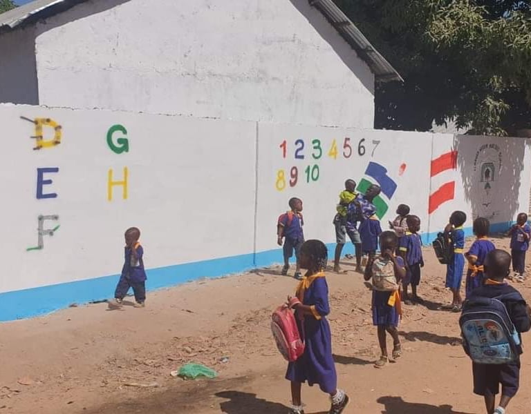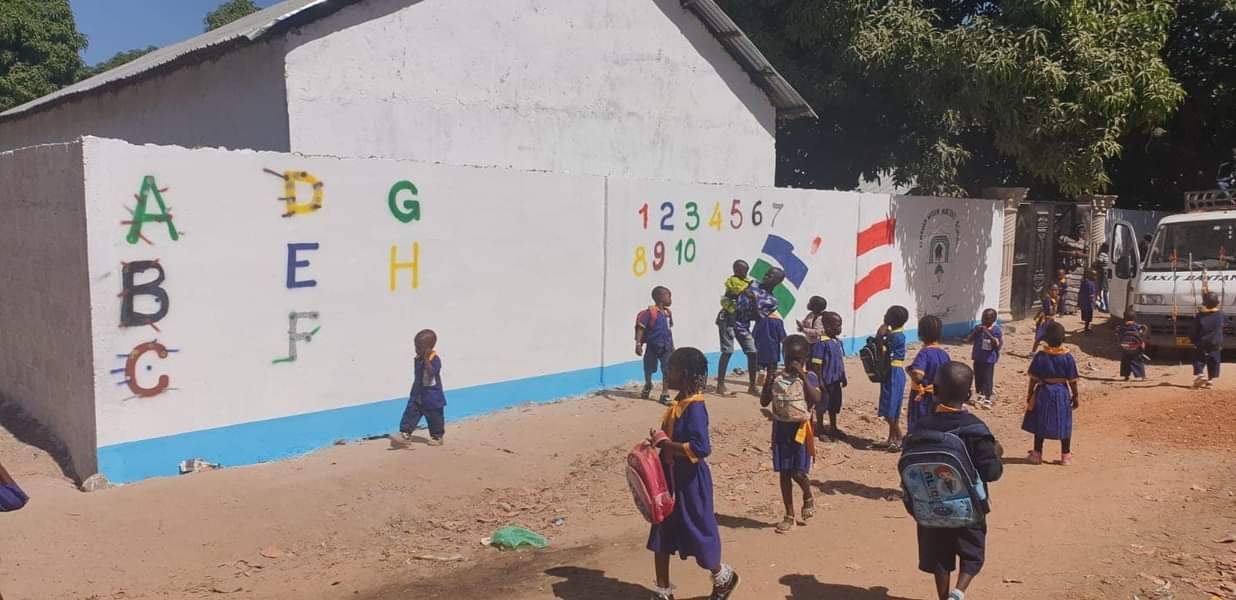 Das aktuelle Vorhaben ist die Verbesserung der Mauer um das Schulgebäude herum. Du unterstützt hierfür mit Material und Arbeitskosten.