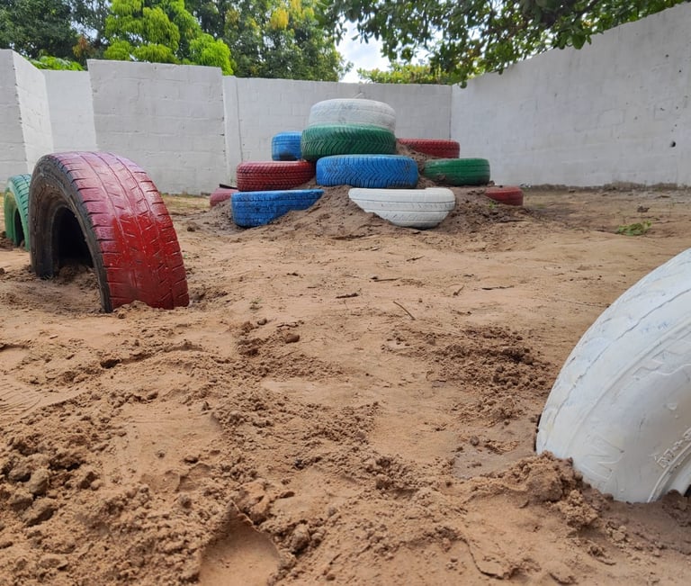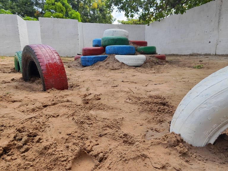 Hier ermöglichst du den weiteren Ausbau eines Spielplatzes im Schulgelände.